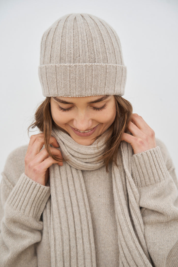Un cappello versatile e intramontabile della serie Duo, realizzato in Italia in cashmere e lana riciclati.