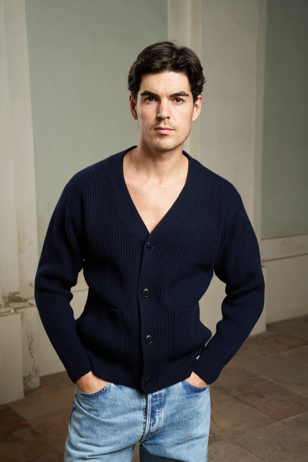 This ribbed cardigan is crafted from a sustainable blend of chunky cashmere and certified mulesing-free merino wool.