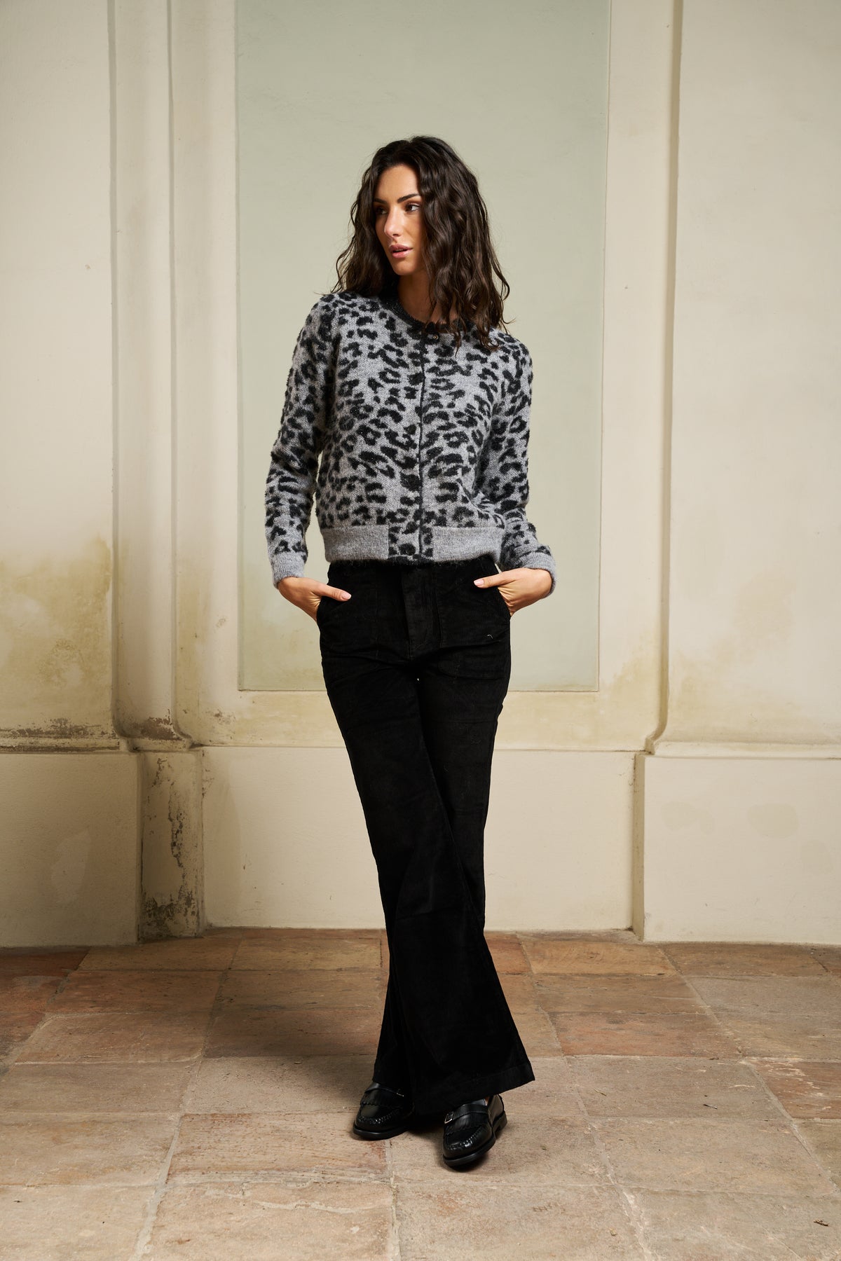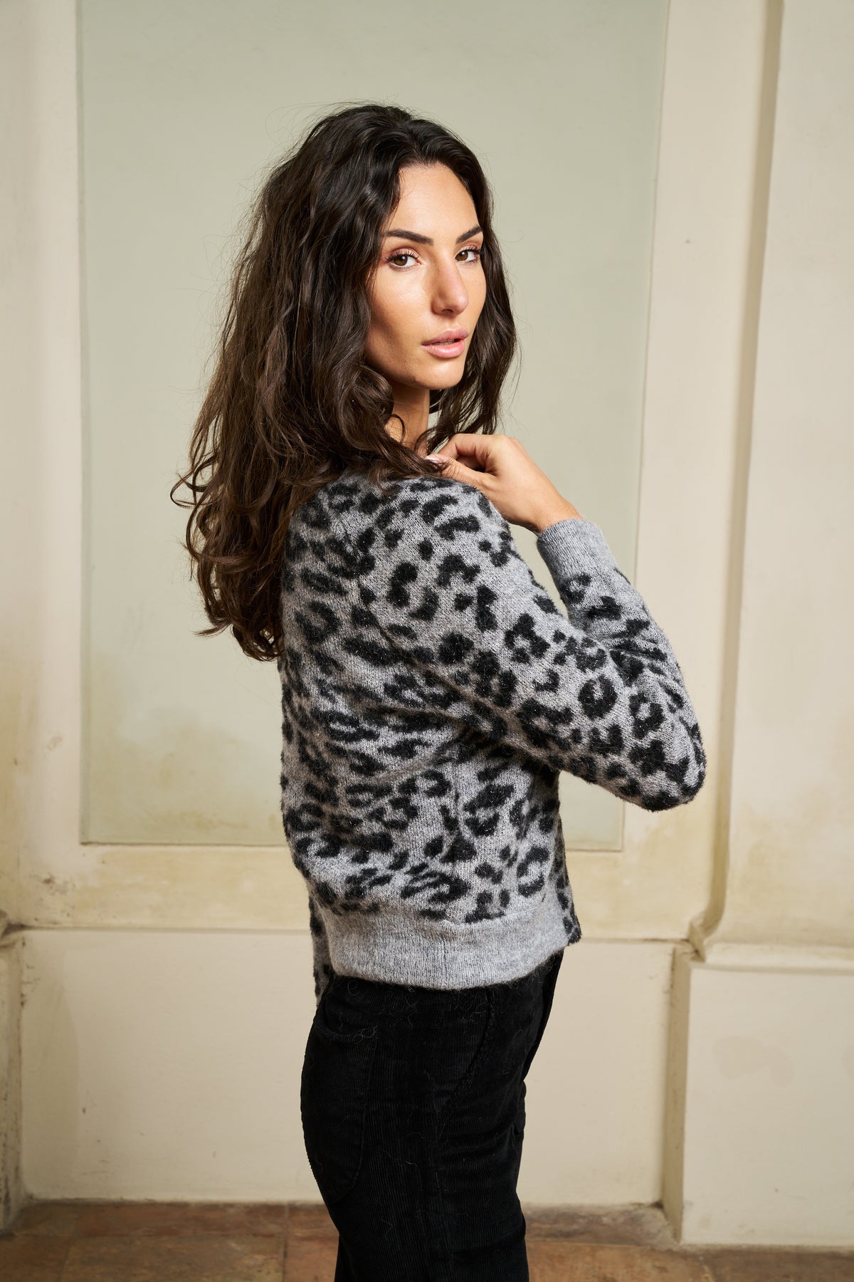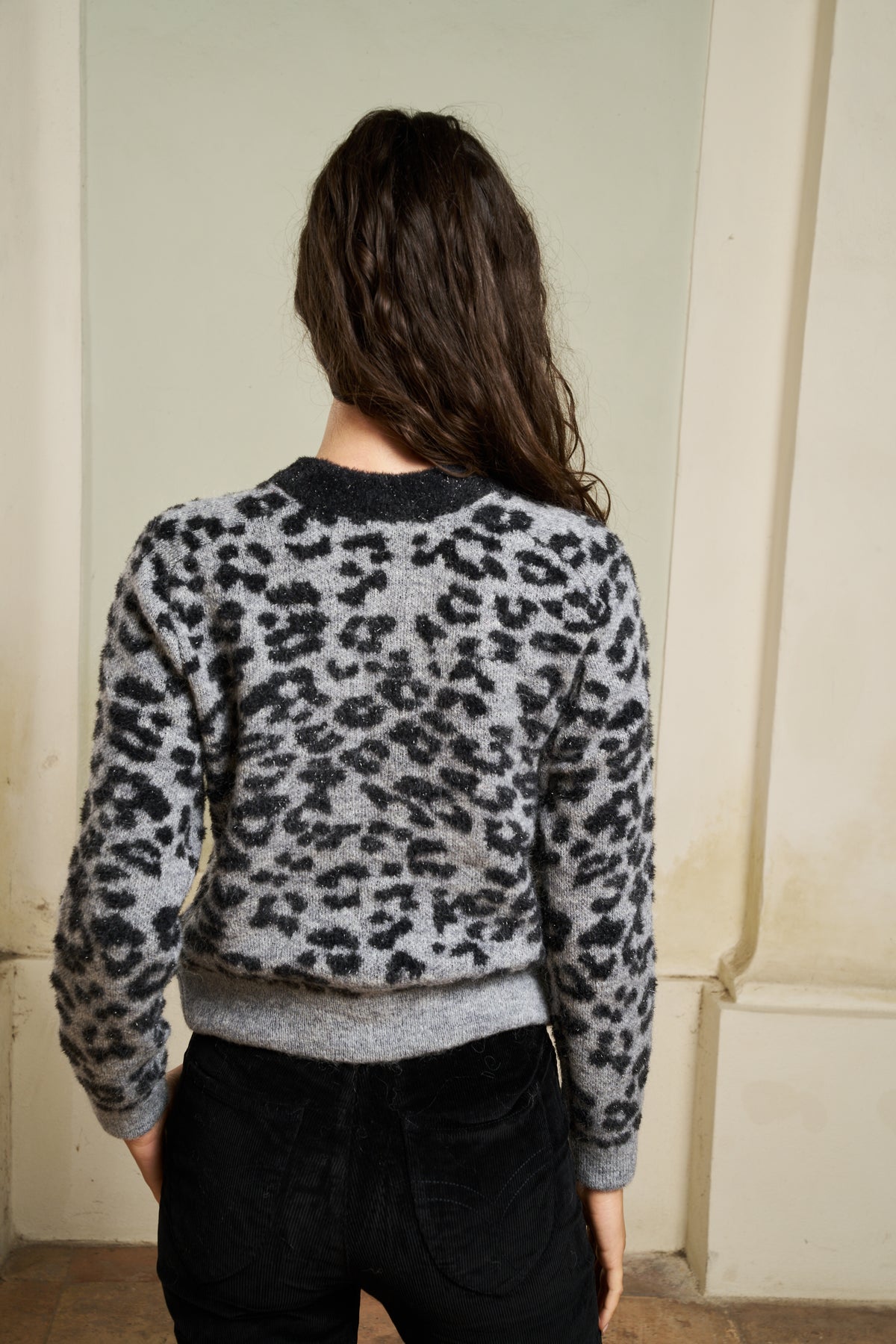 Shiny leopard jacquard cardigan: soft, bold, and with a touch of glam, perfect for adding character to any look.