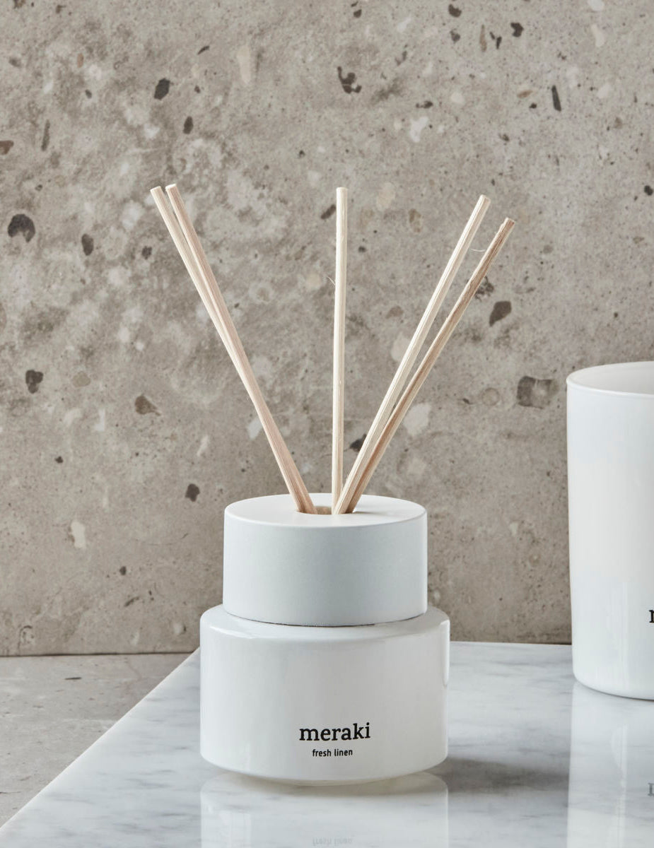 Crafted with high-quality ingredients, Meraki diffuser scents range from fresh, floral notes to warm, woody tones, designed to create relaxing, welcoming atmospheres. Their essential design makes them perfect for any space, from the living area to the bathroom or bedroom, adding not only a pleasant fragrance, but also a discreet decorative element. Usually contained in elegant glass bottles, the diffusers are a refined option for those who want a scented and harmonious environment.
