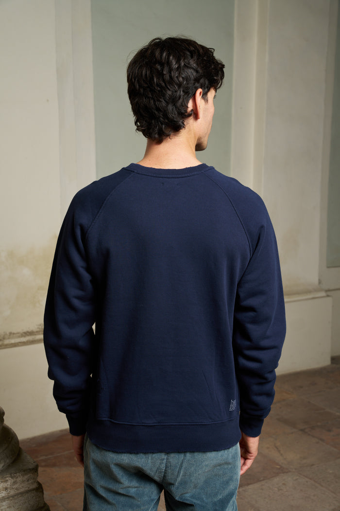 In The Box Vintage-Style Crewneck Basic Sweatshirt Blu