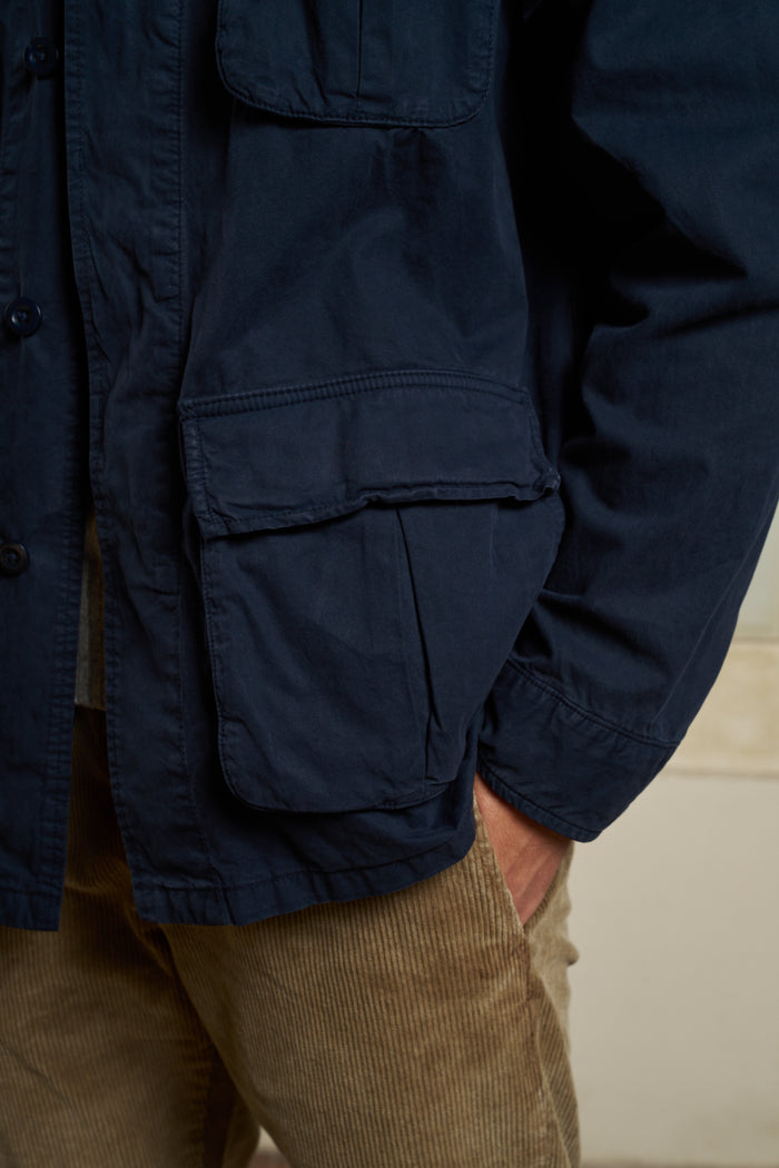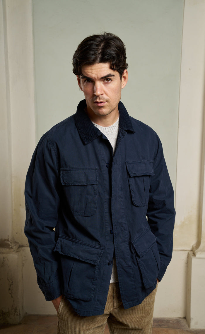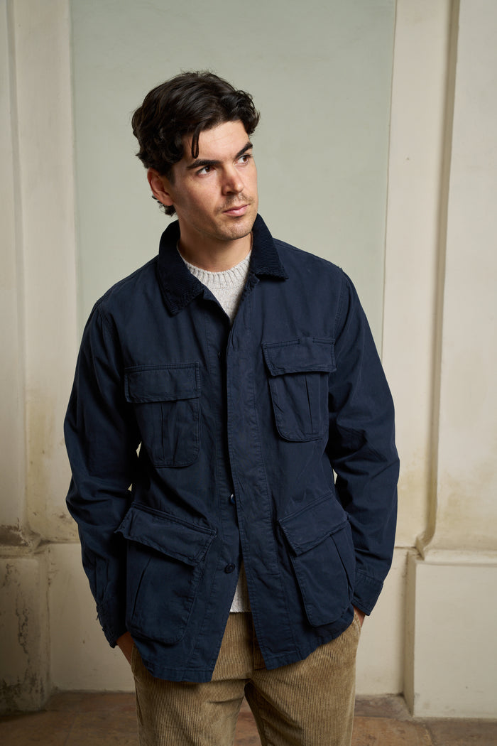 The style is made of pure cotton and is garment-dyed for an authentic heritage effect, making the texture pleasant to the touch. The corduroy collar and inserts add an elegant touch, while the button-adjustable cuffs and four bellows pockets are functional details.