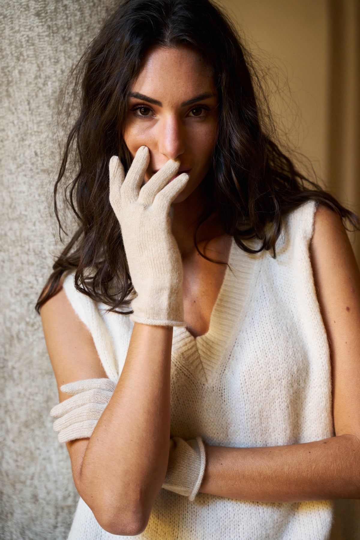 Guanti in 100% cashmere, morbidi e caldi, perfetti per un’eleganza raffinata nelle giornate invernali.
