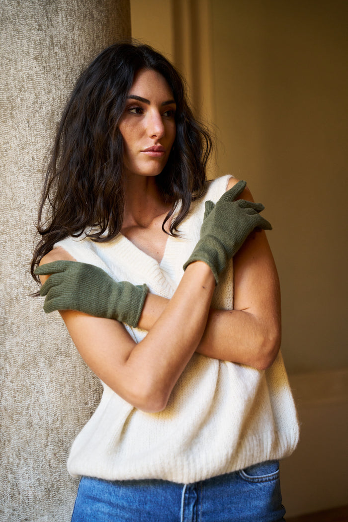 Guanti in 100% cashmere, morbidi e caldi, perfetti per un’eleganza raffinata nelle giornate invernali.