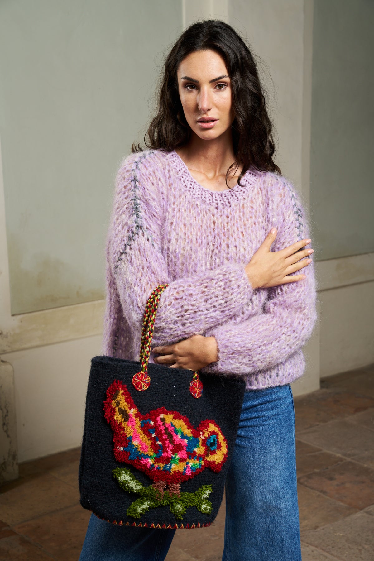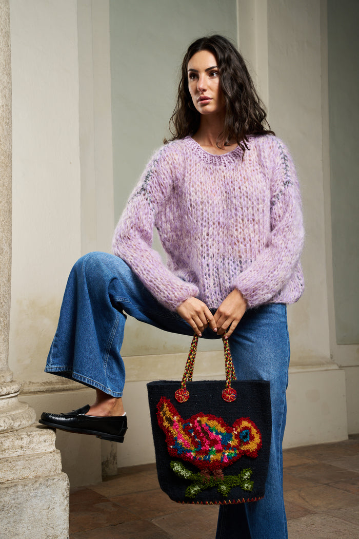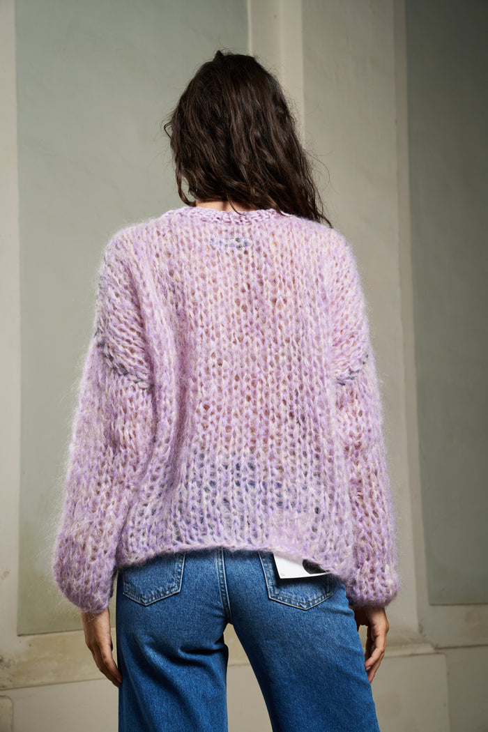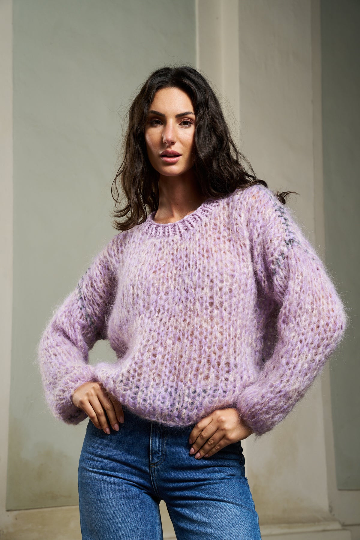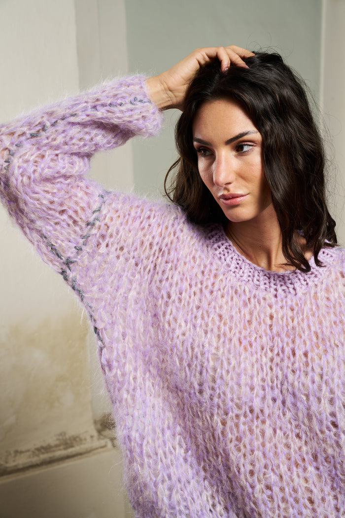 Maglione artigianale in filato pregiato, soffice e leggero, con effetto vaporoso naturale. Un capo caldo e confortevole, perfetto per look casual chic o eleganti.