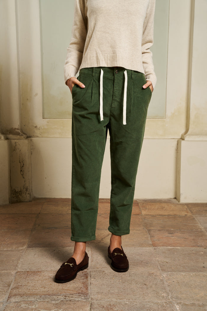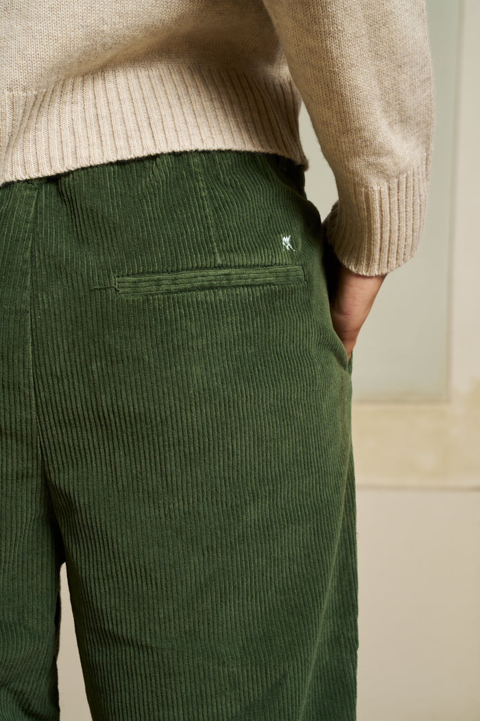 The Hory pants from Velvet Mountain Goods have a chino fit with an elastic waist and