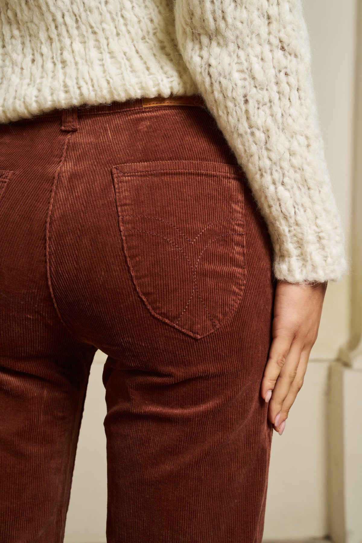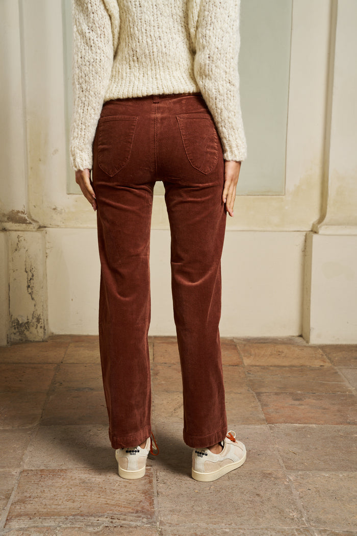 Corderoy smooth corduroy trousers, mid-rise for a casual look, straight fit, slightly flared at the bottom of the leg, with patch pockets.