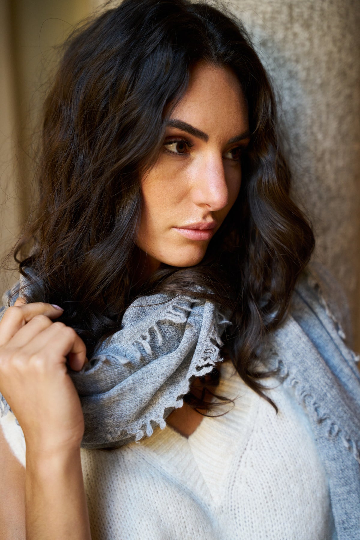 Stola in lana e cashmere con bordi frangiati. Morbida e avvolgente