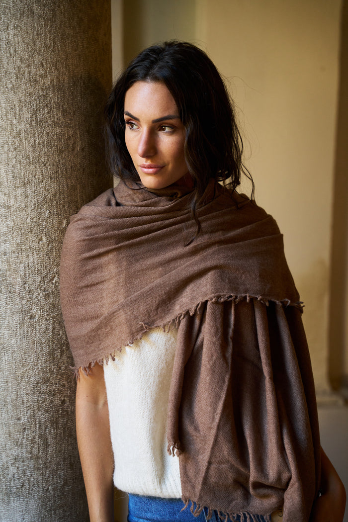 Stola in lana e cashmere con bordi frangiati. Morbida e avvolgente