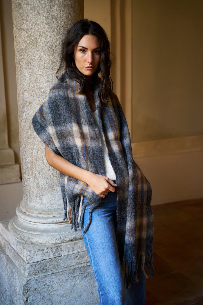 Sciarpa con frange Palme Ardesia