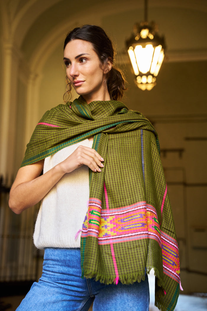 Stola in 100% lana di yak, tessuta a mano. Morbida, calda ed elegante.