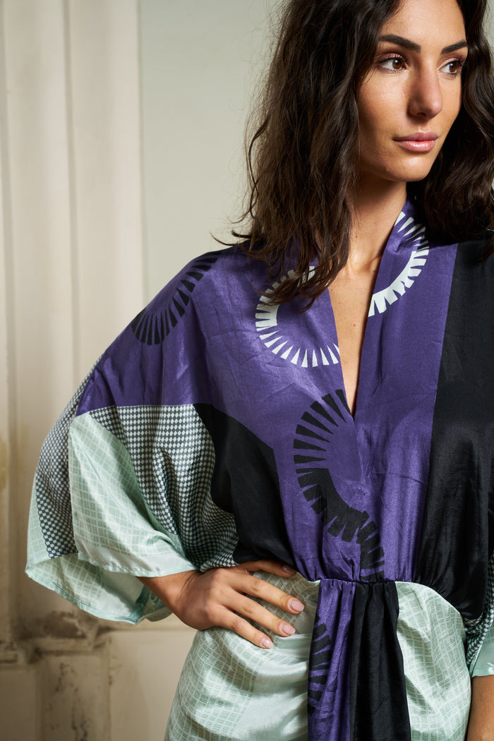 The Juno mini dress exudes irresistible charm, masterfully combining elegance and ease. The deep V-neck and butterfly sleeves add an effortless touch of sophistication, while the tiered gathering at the waist in the front creates a curvy and delicate silhouette. The elastic apron at the back accentuates the femininity and ensures a comfortable and flawless fit.