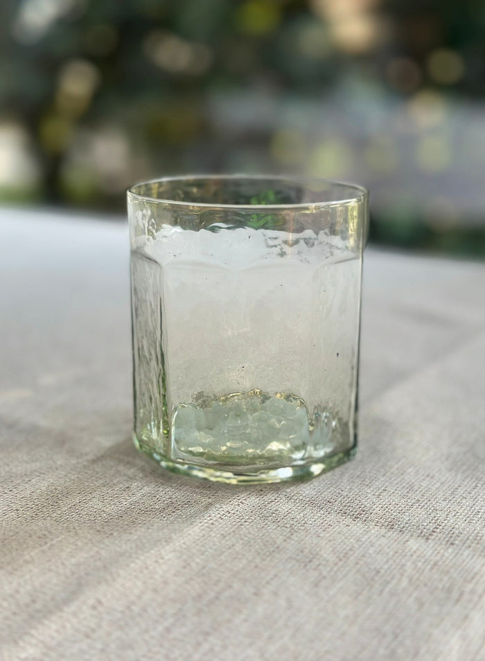 Bicchieri in vetro di Bazar de Luxe, caratterizzati da una texture martellata che dona un tocco elegante e sofisticato. Perfetti per ogni occasione, uniscono stile contemporaneo e fascino artigianale.