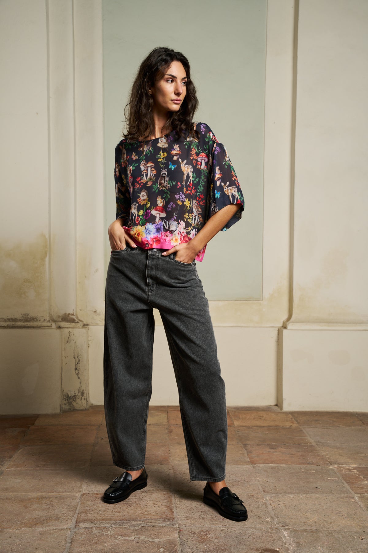Una camicia che reinventa la semplicità: linee morbide, tessuto fluido e un dettaglio inaspettato sul retro. I bottoni diventano protagonisti, trasformando un capo essenziale in un segno di stile.