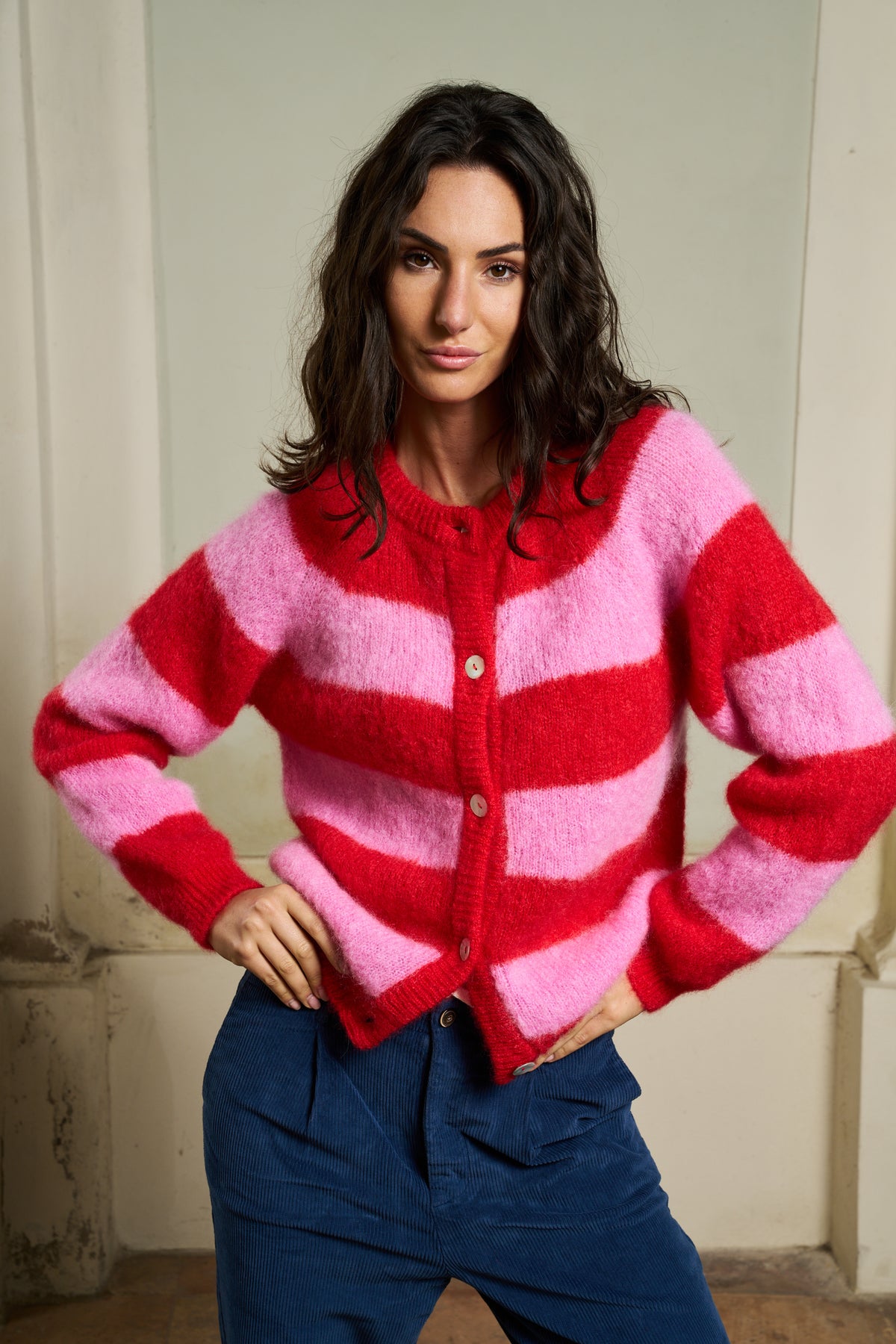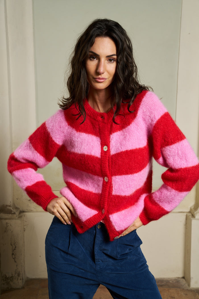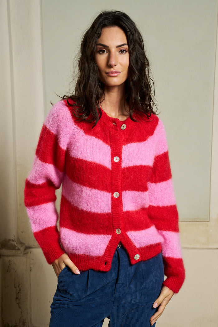 Cardigan a righe Alice Les Tricots d'O Rosa rosso
