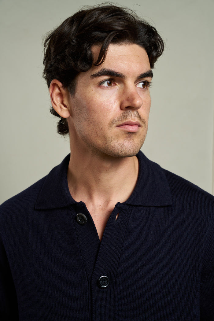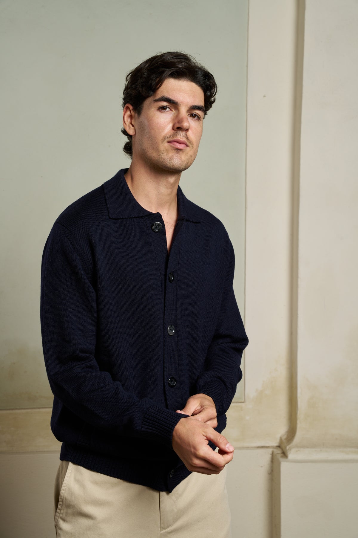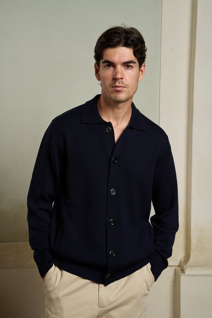 Cardigan con collo a polo 100% lana merino Masq Blu scuro