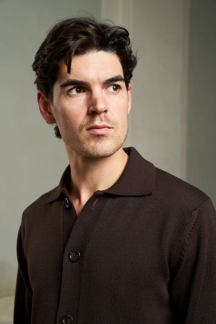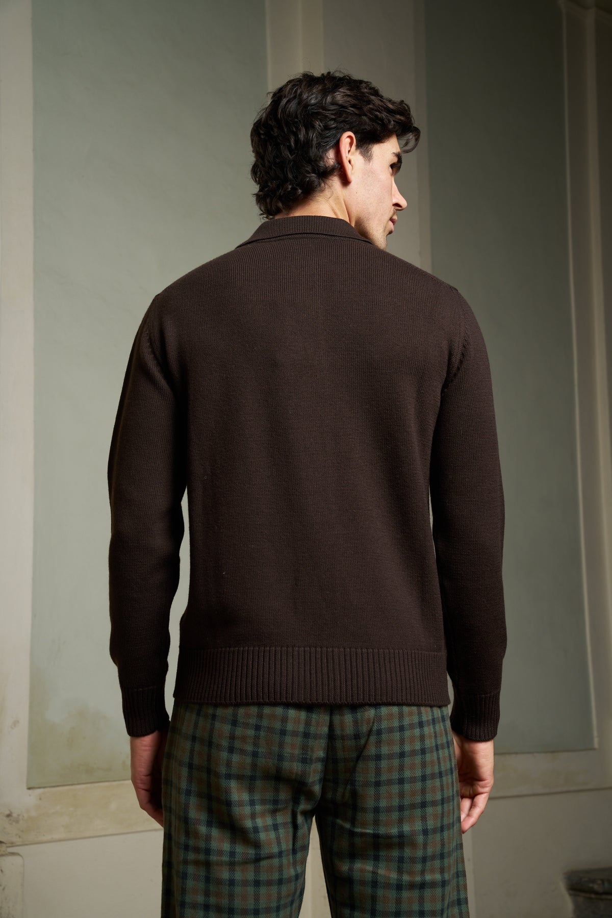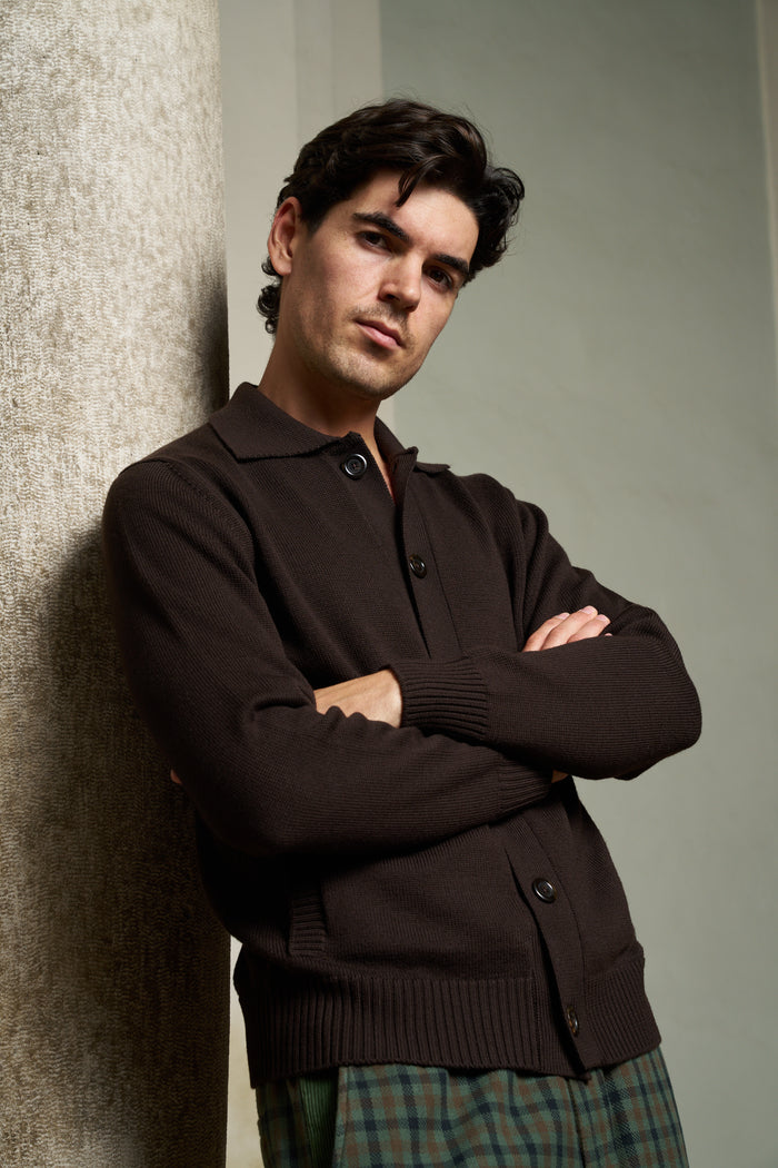 Cardigan con collo a polo 100% lana merino Masq Cioccolato