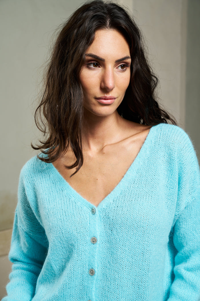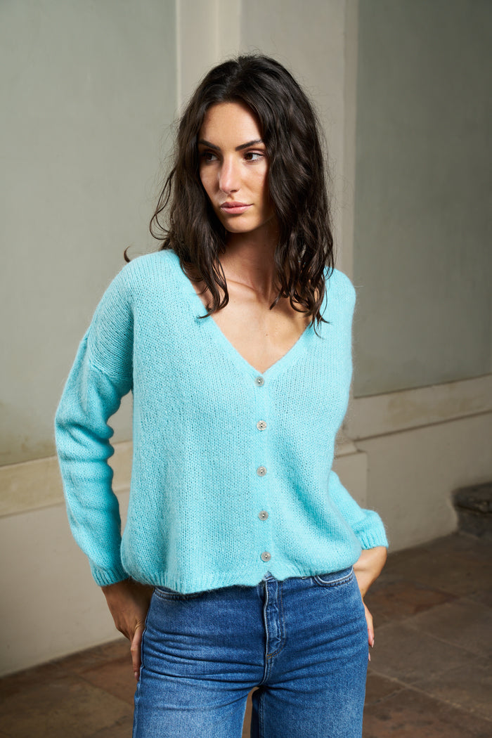Cardigan Melinda corto con bottoni Colorine Acquamarina