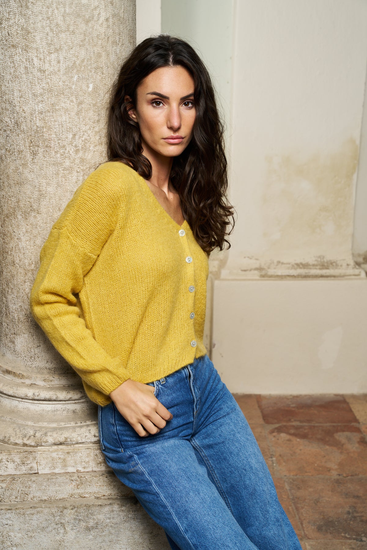 Cardigan Melinda corto con bottoni Colorine Curry