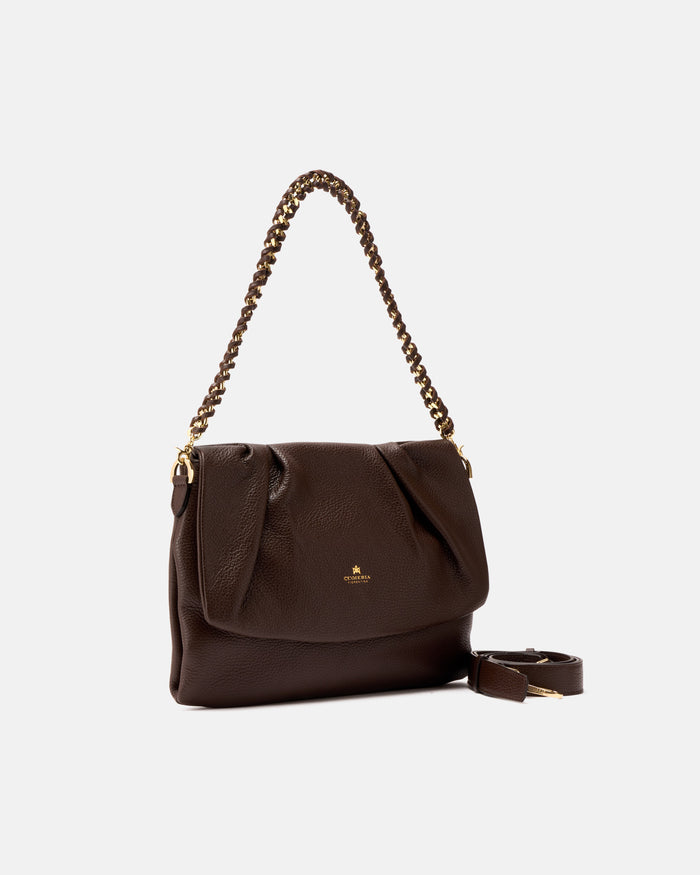 Catena rimovibile colore oro e intrecciata in pelle con drop 19 cm e