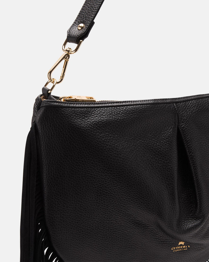 Emma maxi folk con frange Cuoieria Fiorentina Nero