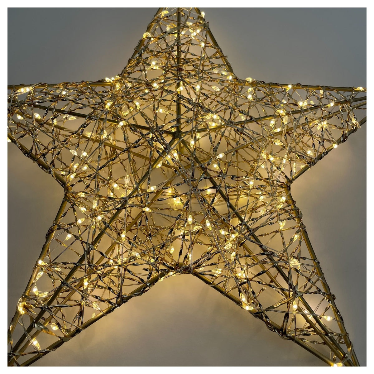 Ghirlanda decorativa in metallo verniciato con luci LED integrate, ideale per creare un’atmosfera calda e accogliente. Dimensioni: 35 x 35 cm.