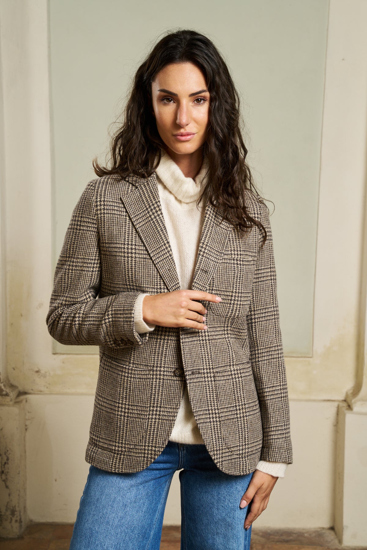 Giacca Neddick Principe di Galles Sebago Beige brown