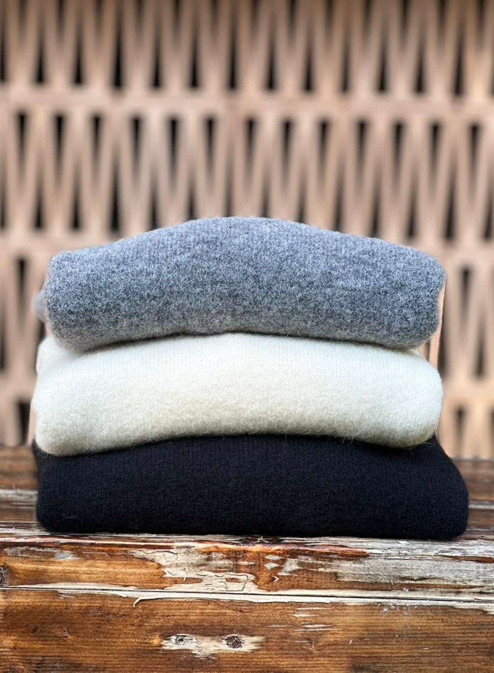 Maglione girocollo oversize in morbida baby alpaca e lana, dal design essenziale e raffinato. Caldo e leggerissimo, avvolge con naturalezza regalando comfort e stile senza tempo. Perfetto per un look casual ma sofisticato.