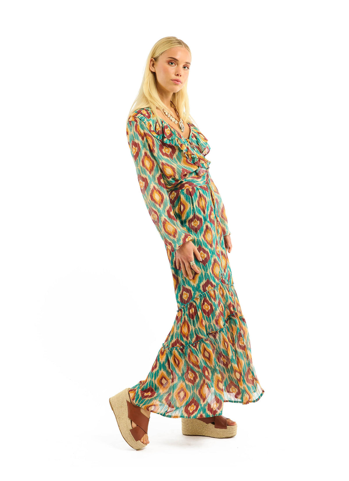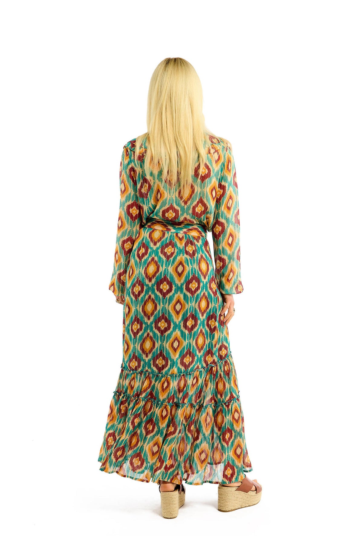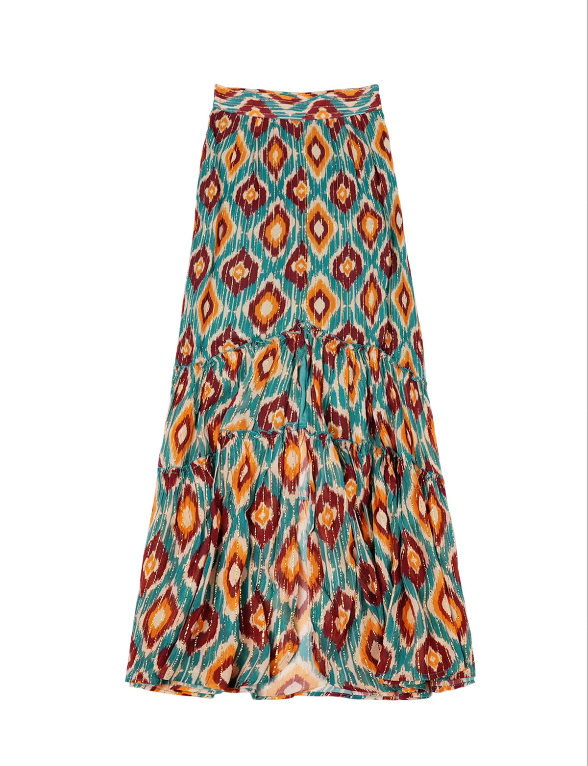 - Linee di lurex dorato corrono lungo tutta la gonna