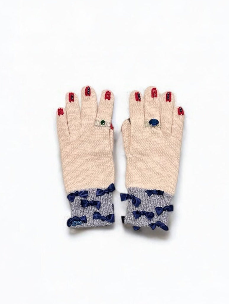 Guanti in lana lavorati a mano, impreziositi da dettagli decorativi originali.