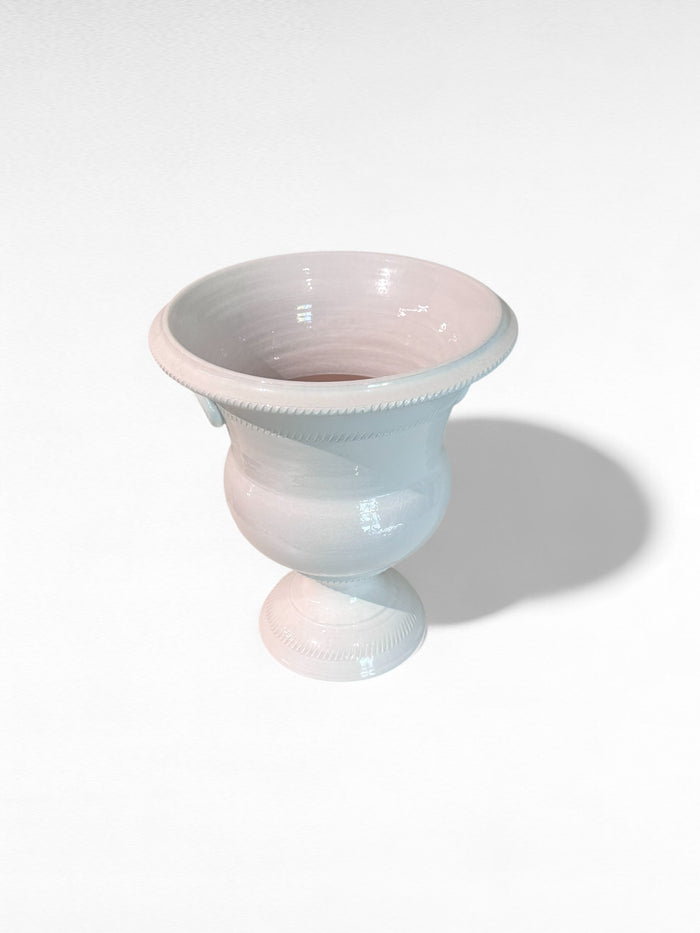 Elegante vaso in ceramica realizzato artigianalmente dai Fratelli Colì. Caratterizzato da una forma classica con ampia bocca e base solida, presenta una finitura lucida e dettagli decorativi delicati lungo il bordo. Perfetto come elemento d’arredo per ambienti interni ed esterni.