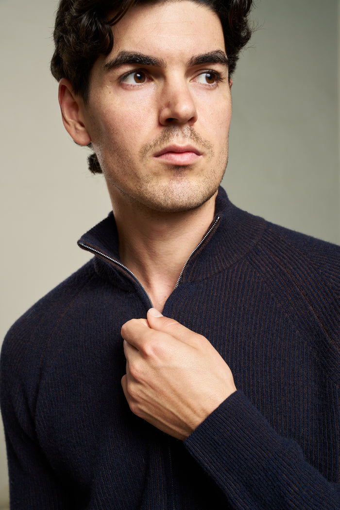 Maglia a coste con zip 100% lana Masq Blu marrone