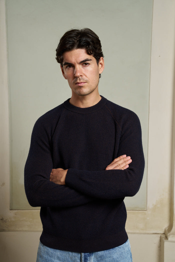 Maglia girocollo a coste lana Masq Blu marrone