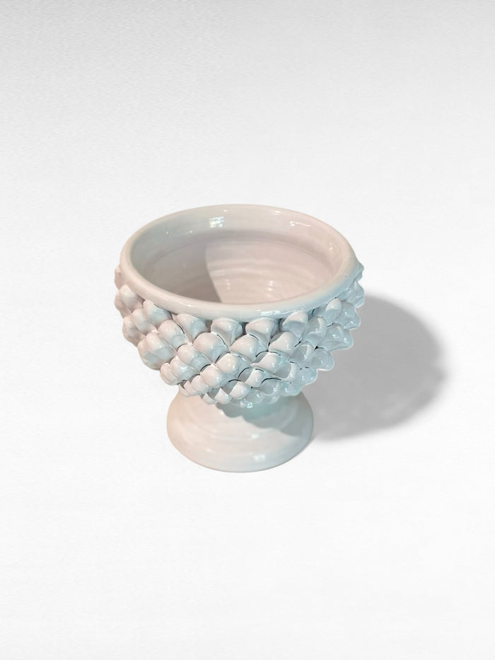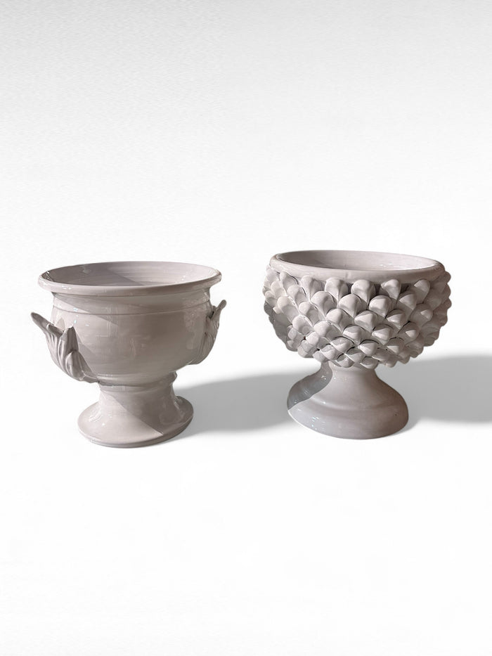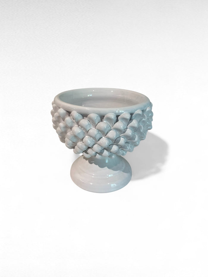 Vaso a Mezza Pigna in ceramica artigianale, realizzato a mano dai maestri Fratelli Colì. Linee eleganti ispirate alla forma della pigna, finitura curata, perfetto per impreziosire ogni ambiente con un tocco di tradizione e stile.