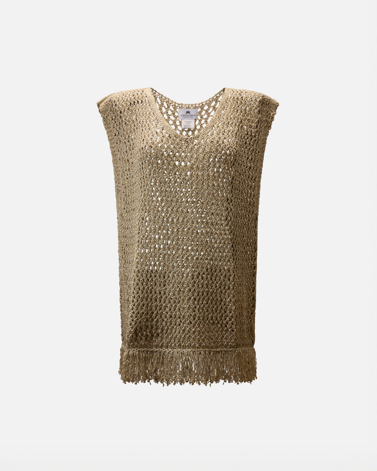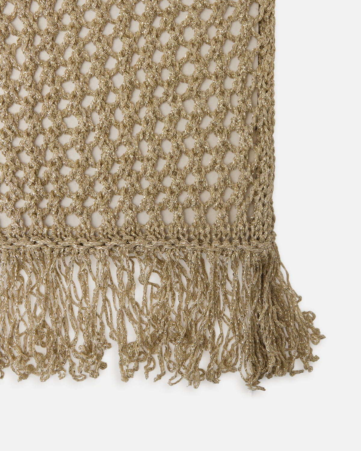 Poncho crochet con frange e lurex Cuoieria Fiorentina Oro