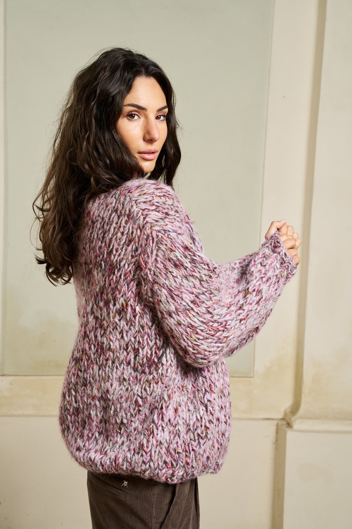 Pullover girocollo Laura Les Tricot d'O Melange rosa marrone